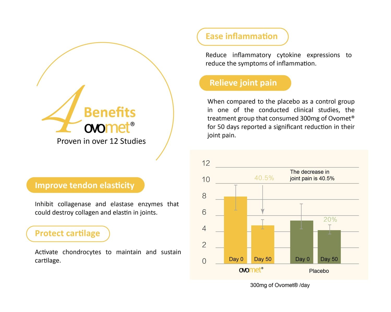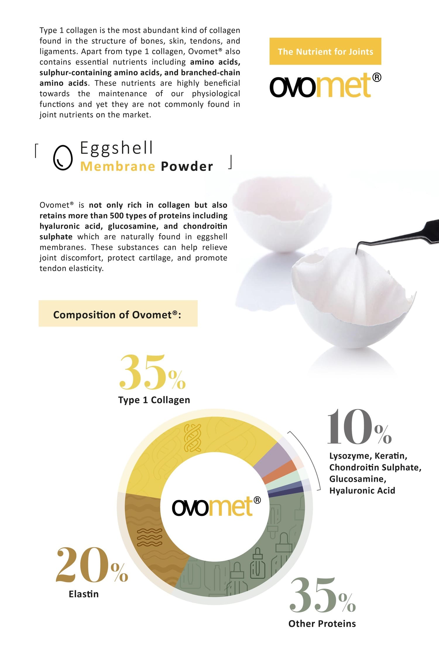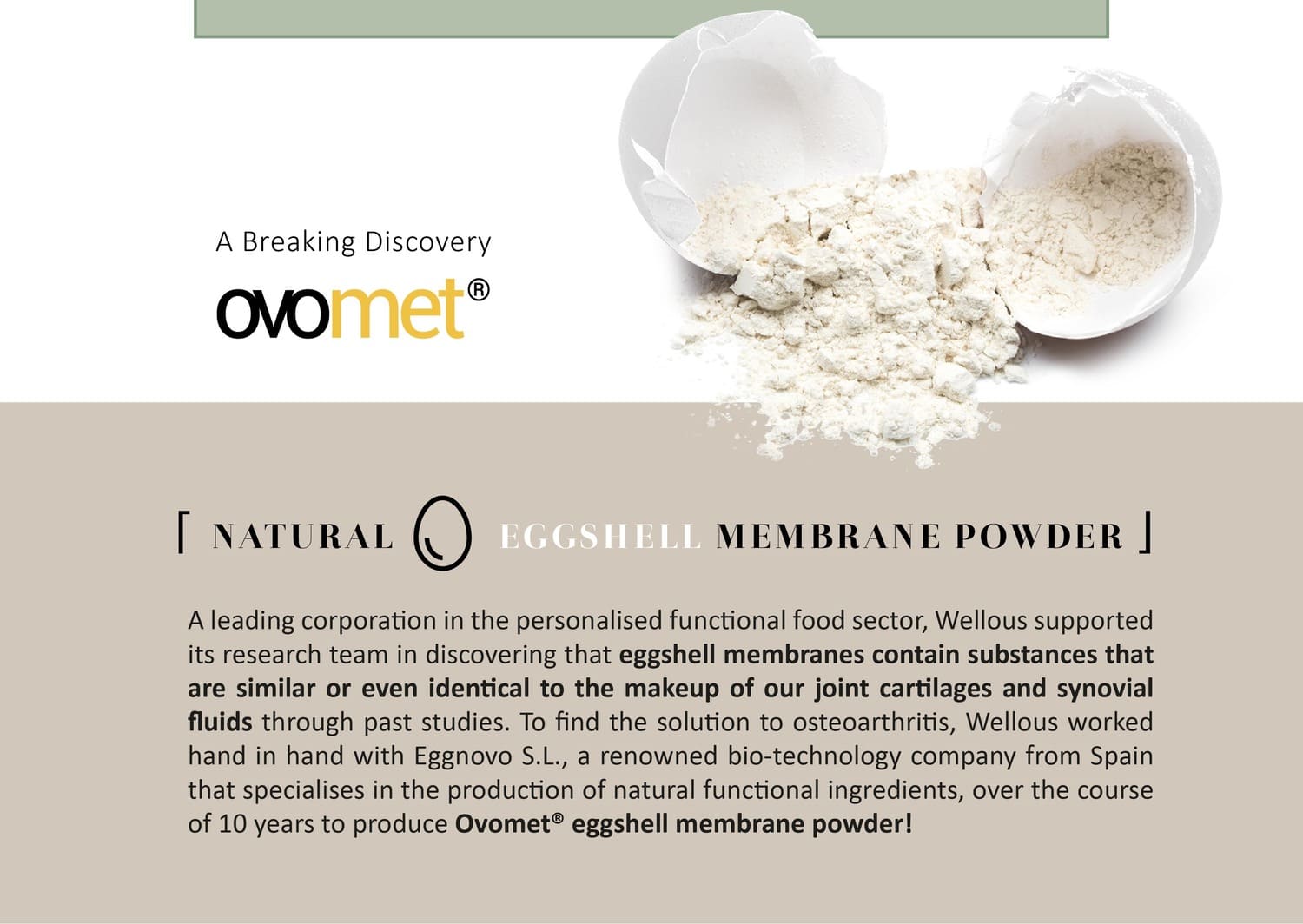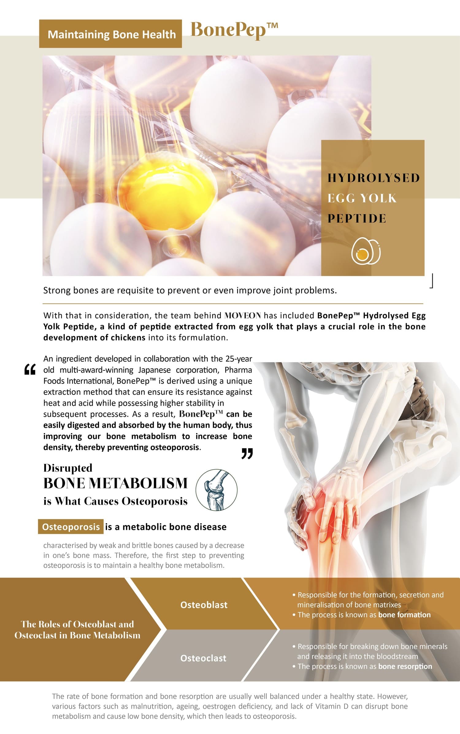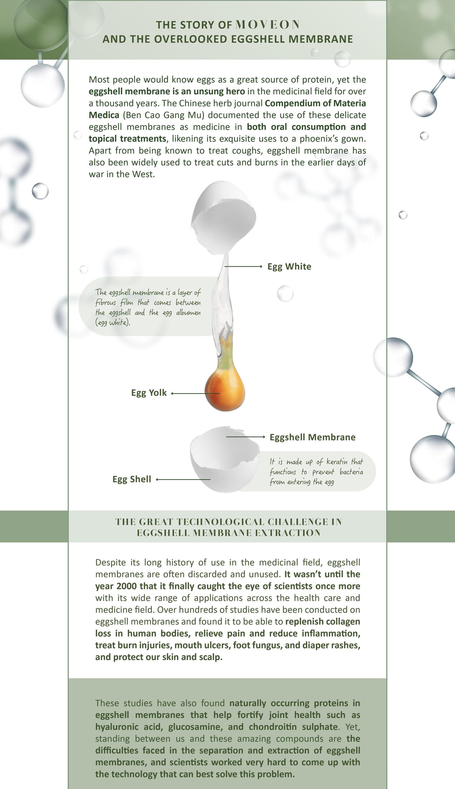 Protecting joints and tackling osteoarthritis, Moveon is powered by Ovomet eggshell membrane powder, founded by Eggnovo S.L, a renowned bio-technology company from Spain, which helps with repairing joint cartilage and synovial fluids.
