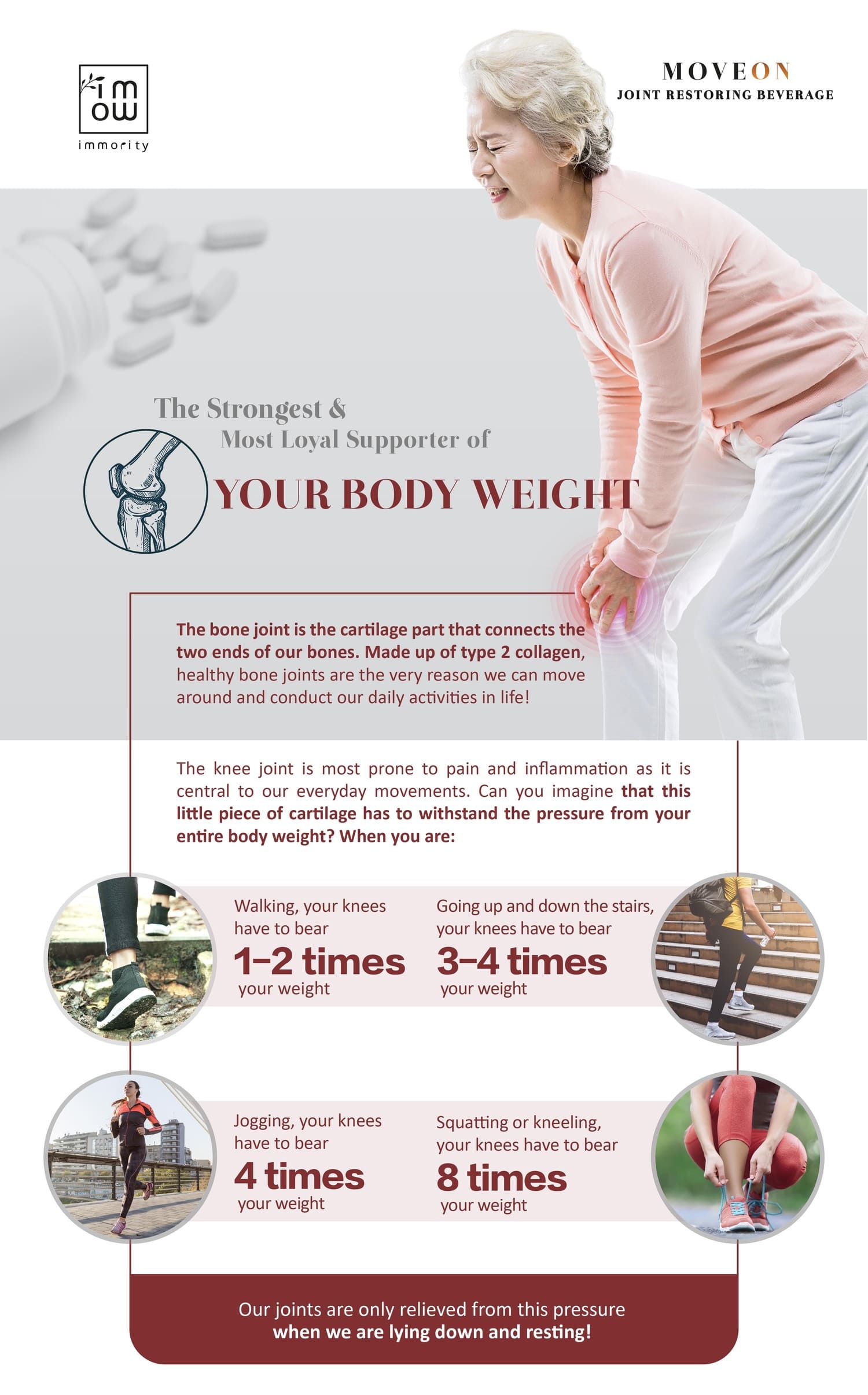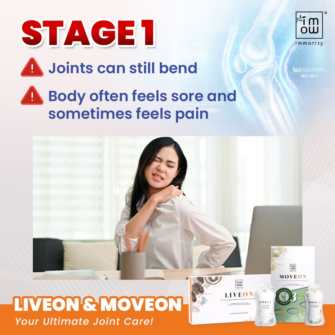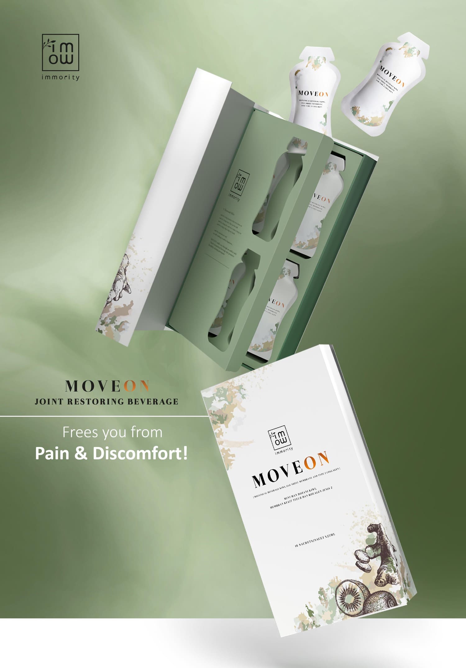 "Drink Moveon, relieve joint and shoulder pain. Enjoy the comfort of movement again."